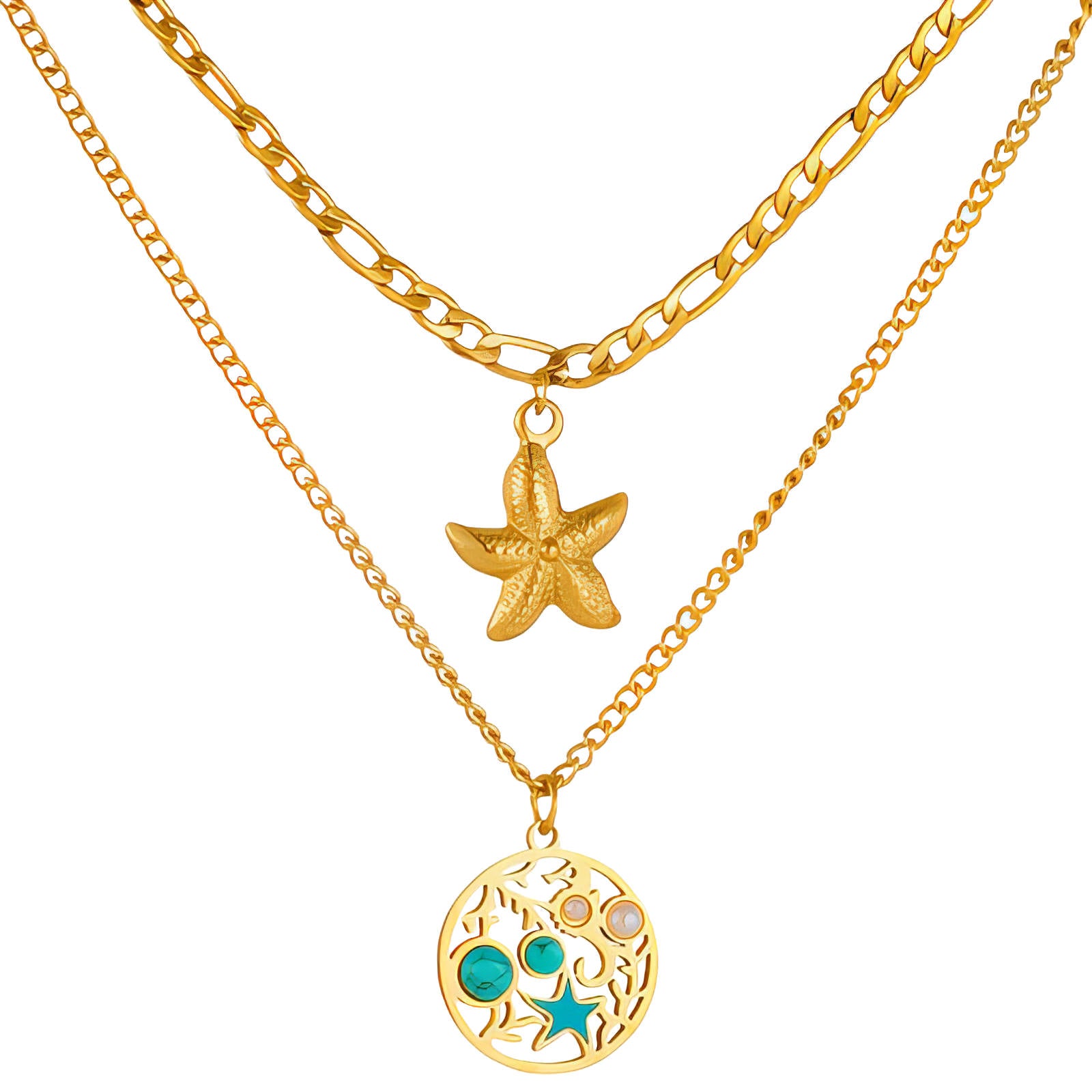 "Starfishs" Necklace, 18K Gold Plated Steel